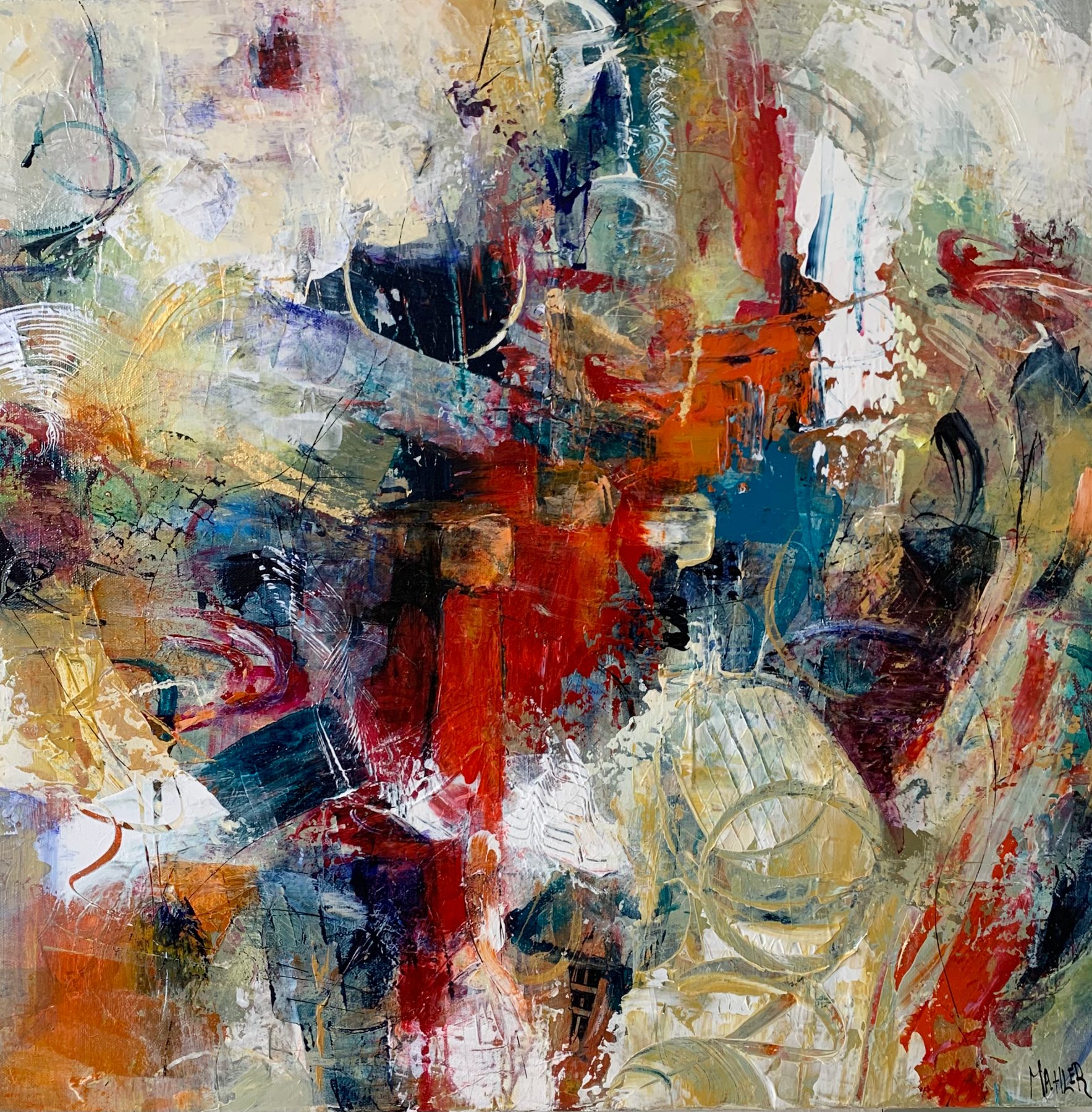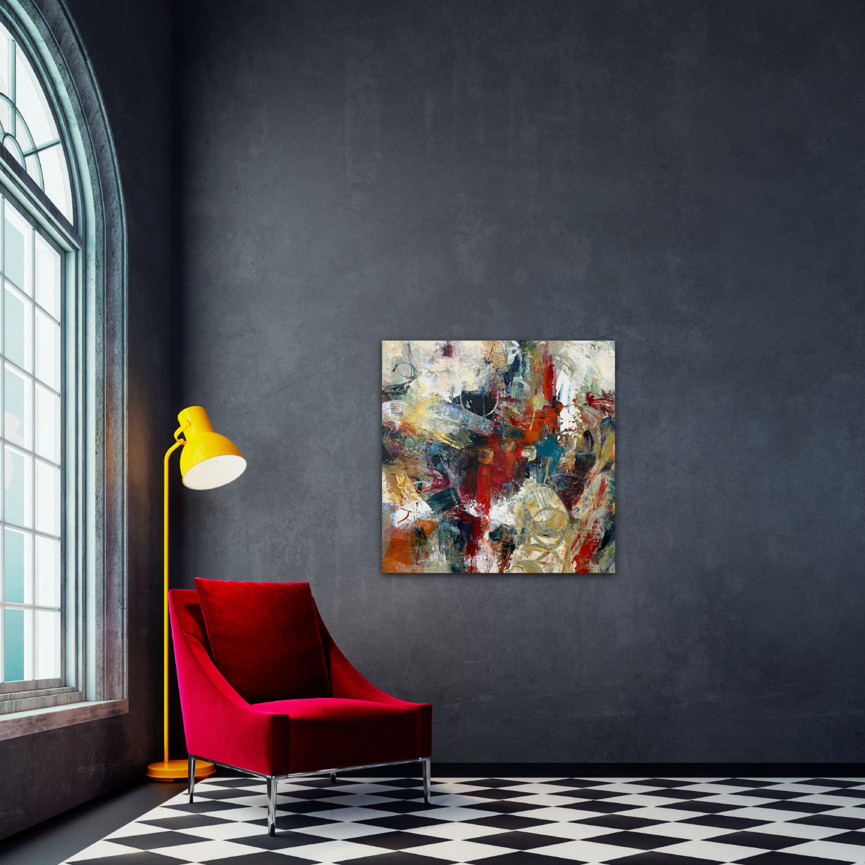 Meow presents a powerful moment of quiet strength, capturing a tiger partially hidden within a forest of slender trees. The composition centers on the tiger’s penetrating gaze, drawing the viewer into a scene where predator and environment merge. Earthy greens, browns, yellows, and grays blend through textured, expressive brushstrokes, balancing abstraction and realism. This interplay between form and atmosphere highlights the animal’s camouflage and majestic presence, inviting reflection on the subtle tension between visibility and concealment in the wild. The work draws from direct observation of tigers in their habitats, bringing immediacy and depth to this intimate portrayal. Created on museum quality canvas with deep 1.5″ stretcher bars. Ready to hang. Mixed Media, Textured
